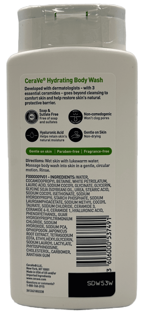 CeraVe Hydrating Body Wash – Gentle Foaming Formula – 10 FL OZ