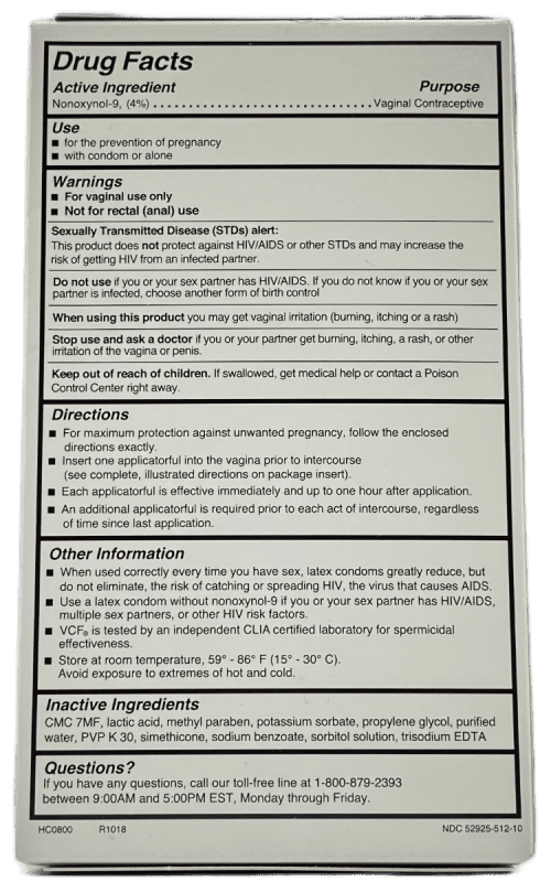 VCF Vaginal Contraceptive Pre-Filled Gel Applicators – 10 Ct