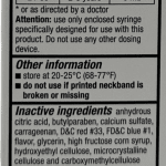 Anhydrous citric acid, butylparaben, calcium sulfate, carrageenan, flavor, glycerin, high fructose corn syrup, hydroxyethyl cellulose, microcrystalline cellulose, and carboxymethylcellulose sodium, propylene glycol, purified water, sodium benzoate, sorbitol solution, tribasic sodium phosphate