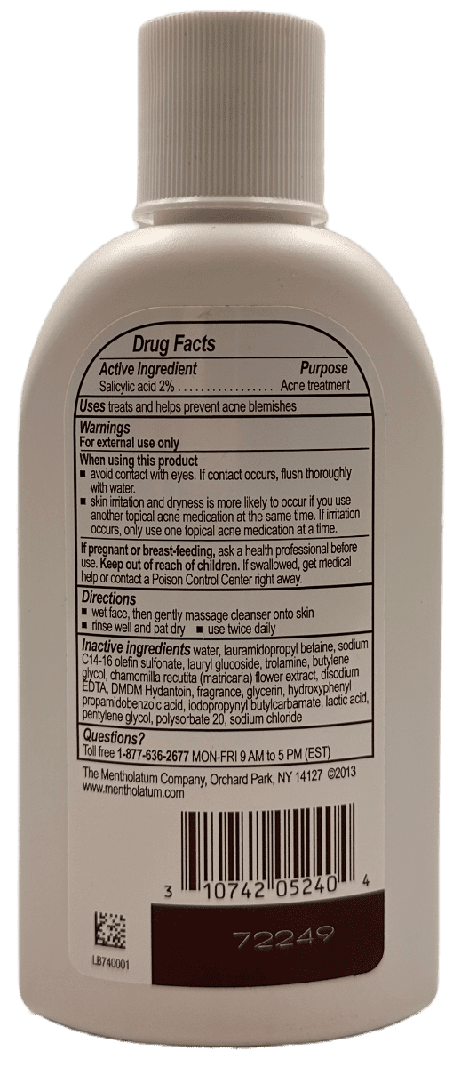 - Wet face, then gently massage cleanser onto skin